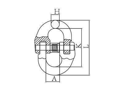 | رمز الصنف | الوزن (kg) | حد حمل التشغيل (t) | حمل الكسر (t) | H±1 | A±1.5 | K±2 | L±2.5 |