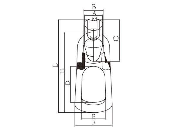 | رمز الصنف | الوزن (kg) | حد حمل التشغيل (t) | حمل الكسر (t) | A±1 | B±1 | C±1 | D±1 | E±1 | F±1 | H±1 | M±2 | L±2 |